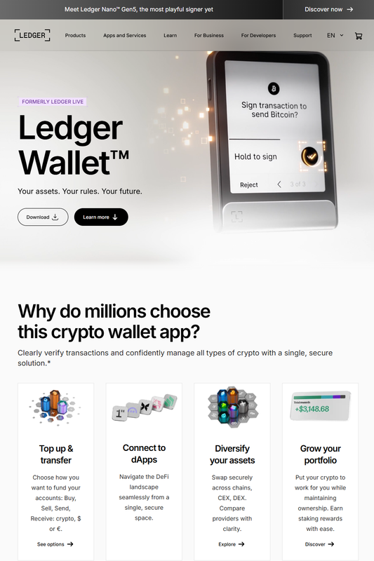 With Ledger Live, you're not just storing crypto — you're owning it with full control and peace of mind.